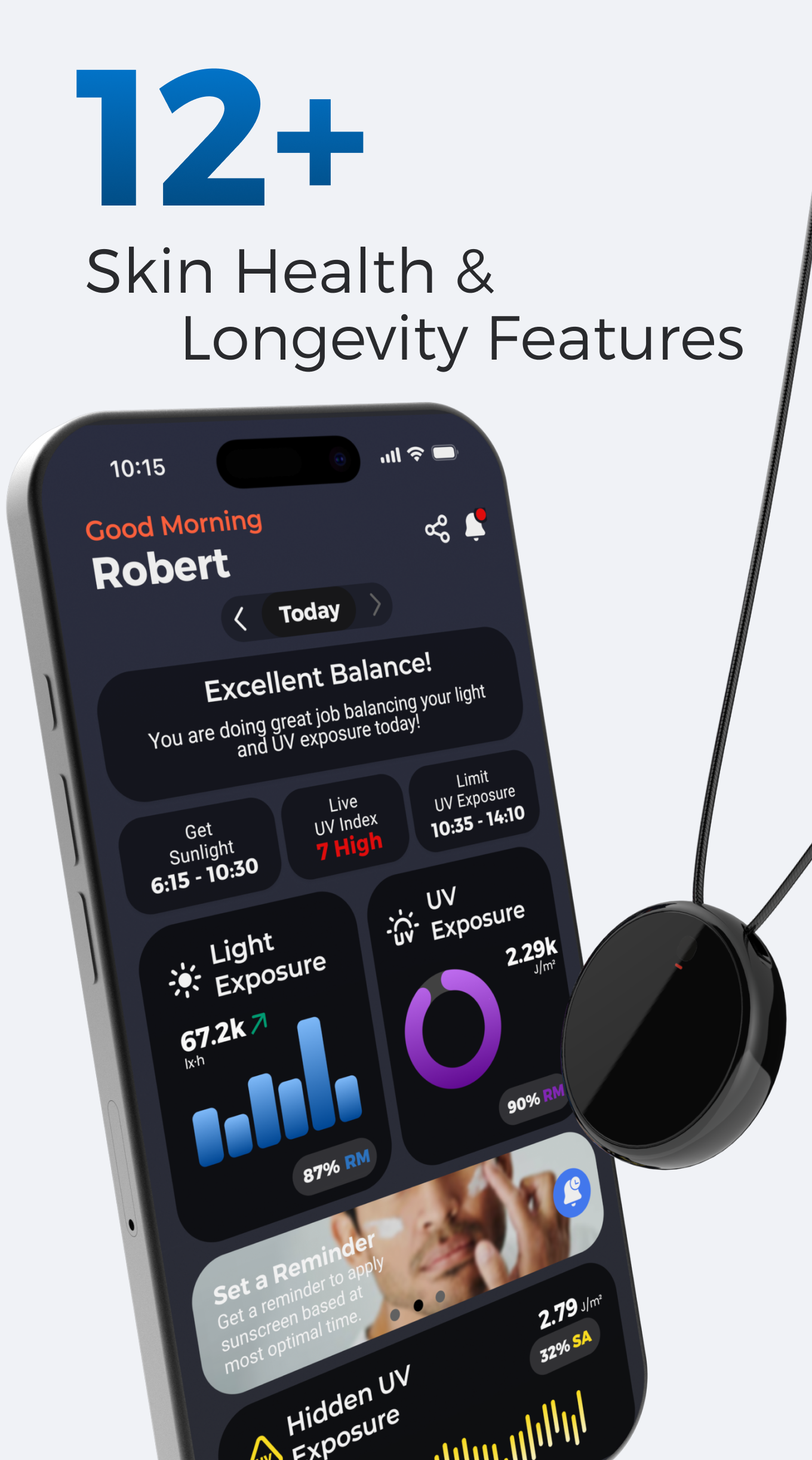 Loox Pendant helps you track your UV exposure not only to make sure you don’t get too much of UV rays, but also if you get enough. Right balance of UV exposure is essential for your skin.